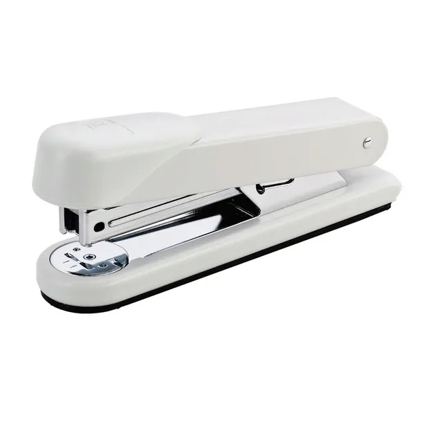 Rewelacyjny zszywacz Novus Stabil do codziennego użytku. Wykonany w całości z metalu, posiadający gumowe miękkie zakończenie do komfortowego zszywania. Umożliwia zszycie permanentne, czasowe i tapicerskie dzięki obrotowej matrycy. System ładowania zszywek od góry. Magazynek na zszywki 24/6 i 26/6. Maksymalna głębokość wsuwania kartki 65 mm. Kolor szary. Posiada certyfikat TUV NORD GS.