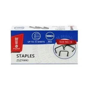 Zszywki MemoBe. Ocynkowane mini (No. 10). Wykonane z wysokiej jakości stali. Zaostrzone końce zapobiegają zginaniu i łatwo przebijają zszywany plik. Wysokość nóżki: 4,9 mm. Zszywa do 15 kartek standardowego papieru (70g/m2).